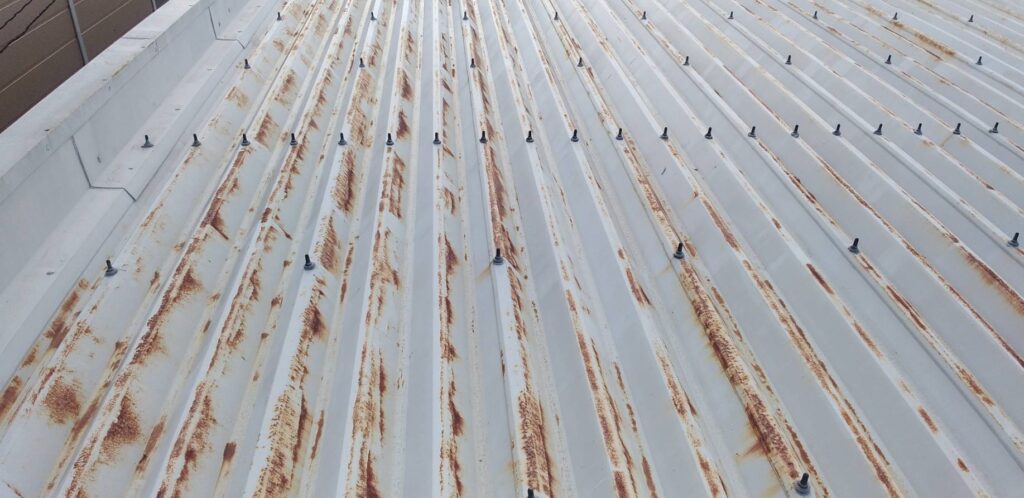 現状は、鉄製の折板屋根ですが、錆が発生しています。