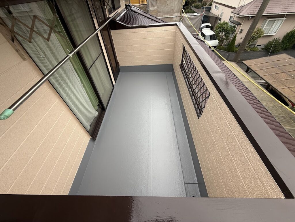 ベランダ床も改めてFRP防水を施工しました。
