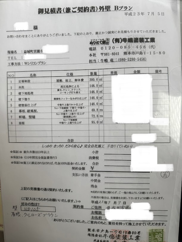 先日、会社に塗装見積のお問い合わせがあり